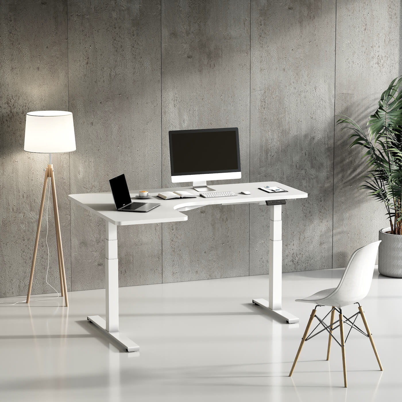Ein elektrisch höhenverstellbarer Schreibtisch besteht aus verschiedenen Komponenten und wird in mehreren Paketen geliefert (Bsp.: Schreibtisch Pro oder Pro-L). Das höhenverstellbare Tischgestell hierbei bei allen Tischen in zwei Farben erhältlich (weiß & schwarz). Unsere Schreibtischplatten können mit abgerundeten Ecken oder als reguläre Schreibtischplatte bestellt werden. Zudem kann die Farbe der Schreibtischplatte passend zum Interieur und zur eigenen Präferenz ausgewählt werden. Hierdurch ergeben sich zahlreiche Möglichkeiten der Kombination.